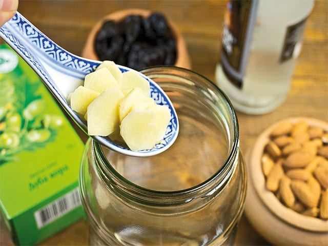- Для изготовления на 1 л спирта (хоть какого крепкого алкогольного напитка) берут от 40 до 50 г перемолотой на мясорубке специи, 100 г меда.