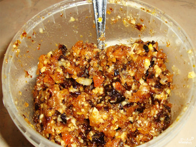 - Измельчаем орехи, смешиваем с медом в равных пропорциях, употребляем ежедневно после завтрака.