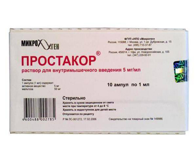 Уколы Простакор содержат в составе активное вещество с одноименным заглавием. Это — звериный экстракт, приобретенный из железопредстательного органа юных быков.